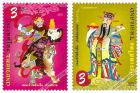 suonano trombe, note musicali, onde. Ai bordi dei francobolli sono segnate
