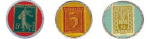 Portogallo 1917-1920. Per la carenza di monete metalliche alcune organizzazioni private portoghesi, come banche ed assicurazioni, emisero monete di necessità (monedas de emergência), incapsulando in dischi metallici francobolli "Cerere" da 1, 2, 5 e 10 centavos.