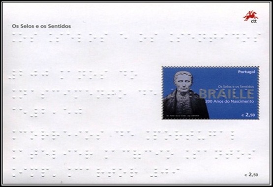 Nel 2009 le Poste portoghesi hanno emesso “francobolli ai cinque sensi”. I francobolli sono con ologramma, tranne il n° 3436 (la lima) che è goffrato Il valore con la tazzina odora di caffè (olfatto); quello col  gelato, se leccato, sa di vaniglia (gusto); il valore con gli occhiali, se viene  mosso, sfavilla (vista); il francobollo con la lima  è in rilievo, per cui se leggermente fregato sulla carta, emette un leggero fruscio (udito);  il francobollo col tubetto di colla, anch’esso in rilievo, se “accarezzato” dà l’idea del tatto.