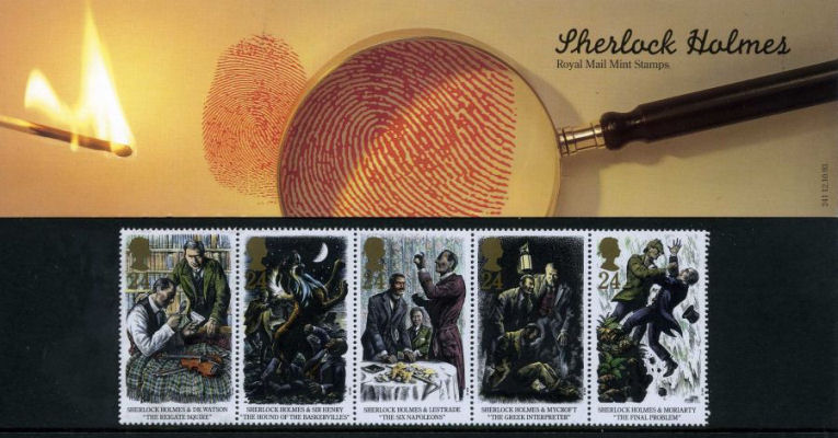 Con i francobolli ci si può anche divertire.  Ne sono esempio le Poste  della Gran Bretagna che negli anni 1993 emisero una serie di 5 valori  sul centenario della pubblicazione del romanzo L’ultimo problema di Conan Doyle. In ognuno dei cinque francobolli della serie dedicata a Sherlock Holmes è nascosta una lettera del cognome dello scrittore inglese e cioè: