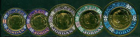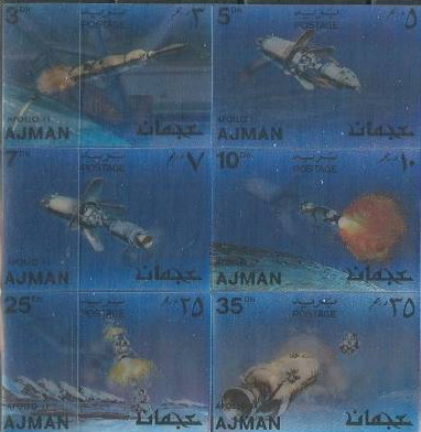 Anno 1967 Giochi Olimpici di Grenoble. Oro; Anno 1968  (M 706.) Giochi olimpici invernali di Grenoble. Francobolli in lamina d’oro; Anno 1969  (M 710) Omaggio al pilota spaziale Komarov. Francobollo in lamina d’oro; Anno 1968 (M 719)  Adenauer . Francobolli in lamina d’oro; Anno 1968  (M 727) Anniversario della Rivoluzione. Francobolli in lamina d’oro; Anno 1968 (M 742)) Giochi olimpici del Messico.  Francobolli in lamina d’oro; Anno 1968 (M 718)  Diritti dell’uomo. Francobolli in lamina d’oro; Anno 1869 ( M 797)  Apollo 11. Alluminio; Anno 1970  Natale. Argento; Anno 1970 (M 1040/45)- Cani/ Dogs ; Anno 1970 (M 1047/52)- Uccelli / Birds; Anno 1970 (M 1054/59)- Animali / Animals; Anno 1970 (M 1060/65) - Imbarcazioni / Ships; Anno 1970 (M 1066/71) - Automobili d'epoca / Old car ; Anno1970 ( M 1073/78) - PhilaTokyo '71; Anno 1970  (M 1080/85))- Spazio / Space ; Anno 1970 (M 1087/92)- Natale / Christmas; Anno 1996 (18-5) 9° expo internazionale di Beijing;