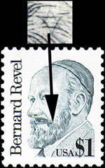 Anno 1948 (527) Centenario di Fort Bliss. Nel triangolo centrale sono inserite immagini che illustrano diversi mezzi di trasporto, ad esempio un cammello. Anno 1986 ( 1687)  Bernard Revel, umanista ed educatore di origine  ebraica. Nella barba è nascosta la Stella di David. A partire da questo francobollo sono alcune centinaia quelli emessi dagli Stati Uniti con microscrittura; Anno 1989  (3 dicembre - busta postale))   E’ il il primo ologramma degli Stati Uniti su busta postale;  Anno 2000 (BF 36).  Esplorazione dello spazio. Immagine della Terra con l’America del Nord e una parte dell’America del Sud. Forma rotonda. Con ologramma;  ; Anno 2000 (36) E’ il primo foglietto  adesivo rotondo  degli USA  con ologramma; Anno 2000 (BF 36) Esplorazione dello spazio. Il foglietto contiene due  ologrammi rappresentanti  l’allunaggio; Anno 2000 (BF 37) Esplorazione dello spazio. Primo uomo  sulla luna. Foglietto. Con ologramma; Anno 2000 (BF 38) Esplorazione dello spazio. Fuori gravità terrestre Con ologramma;  Anno 2005 (emissione privata) Rami in fiore. Anaglifico Anno 2006  3758/9   Aereo X americano. Con ologramma;