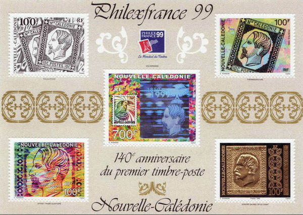 Nuova Caledonia 1914-23  La Nuova Caledonia rilasciò piccoli cartoncini con applicati dei francobolli su un lato, mentre sull'altro era riportata la stampigliatura: "Tresorier payeur de la Nouvelle Cáledonie" e "Secretariat General".