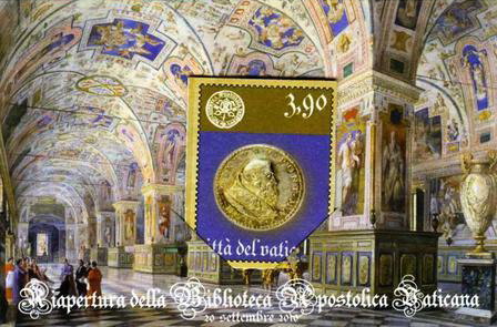Anno 2010 (2 sett:) 'Minilibro' che si può sfogliare e leggere (104x70mm): sulla copertina è raffigurato Sisto V, mentre all’interno vi sono riprodotte sei pagine con le immagini delle arti liberali (Grammatica, Retorica, Dialettica, Aritmetica, Geometria, Astronomia e Musica) tratte dal Codice Urbinate latino;