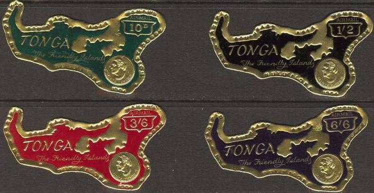 Anno 1963 ( 128/33) Serie monete d’oro. Oro;  Anno 1964 (136/45) Conferenza associazione femminile del Pacifico. Oro; Anno 1965 (11/5)  Monete d’oro; Anno 1966 (152//9  Anniversario morte della regina Salote Tupou III, Oro; Anno 1967-1068 (175/81-182/209) Incoronazione del re Tupou IV – 50° anniversario del re  Taufa’ahua IV. Monete rotonde non dentellate.E’ stato usato del Palladio; Anno 1969 (PA 63/7)  Ricerca di campi petroliferi. Oro; Anno 1970 (238/242 e 243/7) Visita reale. Oro.  Indipendenza. Oro; Anno 1970 (PA 73/4)  Indipendenza. Oro; Anno 1972 (55/6)  Orologi. Argento; Anno 1973 (317/21)  200° anniversario dell’arrivo del cap. Cook. Oro; Anno 2000 (BF 35) Satelliti geostazionari; Anno 2000 (BF 34) Regine; Anno 2000 (BF 53) Anno cinese del drago; Anno 2001 (BF 36)  Anno cinese del serpente; 2002 (BF39) Anno cinese del cavallo; Anno 2003 (1219/22) Cinquantenario dell’inaugurazione della Regina Elisabetta